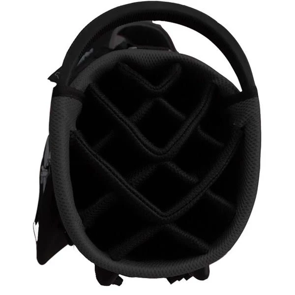 A 14-way, 8.5” diameter divider allows for easy club organisation, with a durable, polyester-based fabric capable of withstanding torrential rain. Thermo-sealed pockets ensure that clothing, essentials and accessories remain dry and safe, while the ergonomic shoulder strap and hip pad make for easy hoist and transport around the course.